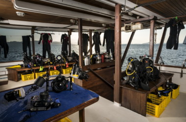 Durant les 12 jours de votre croisière, pas moins de 33 plongées pour rencontrer requins baleines, bancs de barracudas (l’un des plus impressionnants d’Indonésie !), requins de récif, requins gris, renards et marteaux, raies aigles, raies Mantas, mérous géants, bancs de carangues, bancs de perroquets à bosse, tortues mais aussi un tas d’espèces macro, pour votre plus grand bonheur !